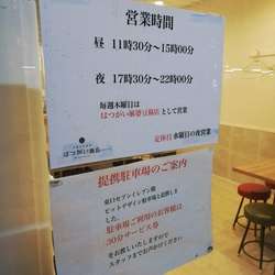 | 営業時間 | 11:30〜15:30/17:00〜21:30 [土・日・祝] 11:30~21:50 |