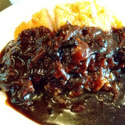 大人気の老舗洋食店。牛肉をしっかり煮込んだ色の黒い辛口のカレー。