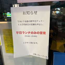 | 営業時間 | 11:00~15:00 18:00~21:00 ※7/2~平日ランチのみ営業 |