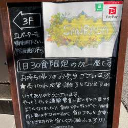 | 備考 | 1日限定30食のスタンディングスタイルでの営業。 30食のうち10食は先着順で予約。 香水をつけた方、柔軟剤が臭う方お断り。 予約 https://yoyaku.toreta.in/sanrasa/#/ 2017年12月ゴールデン街から移転。 【料理とメニュー以外の撮影は厳禁❗️】 |
