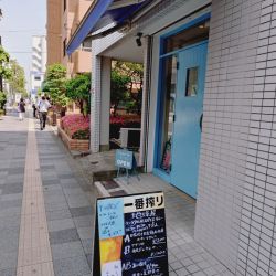 この通りはその頃下町の色が残っていたが、現在は垢抜けた印象となり、風景がかなり変わったなあと思いつつ、青の外観が特徴的なこちらのお店に入店。