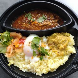 雨模様の中呼び込みをされていたこちらを覗いてみると、個性的なカレーメニューが多い。