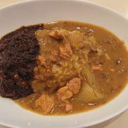 カレーポットに入って登場するカレールー これだけで気分もアガりますね "地鶏チキンカレー"は "チキン"がカレーにダイブする前に炙ってあり 凄く香ばしくていい感じ