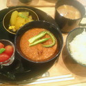 精進料理を出すこのお店。その中にカレー定食なるものがあった。精進にカレーというのもいかがなものかと思い、まずはレジにて注文を行い前払い。その後空いていたテーブル席に着席。