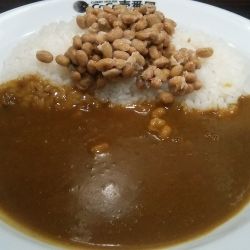 ほぼ具のないルー。パックから出しましたね的な納豆オンザライス。