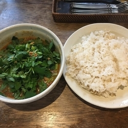 パクチーとクレソン大好きというのもありますが、サラサラのルーは、良い意味で牡蠣やクレソン、パクチーの美味しさを引き立てていました。ライスとの相性も良く最高です!(ライスはセルフでおかわり自由)